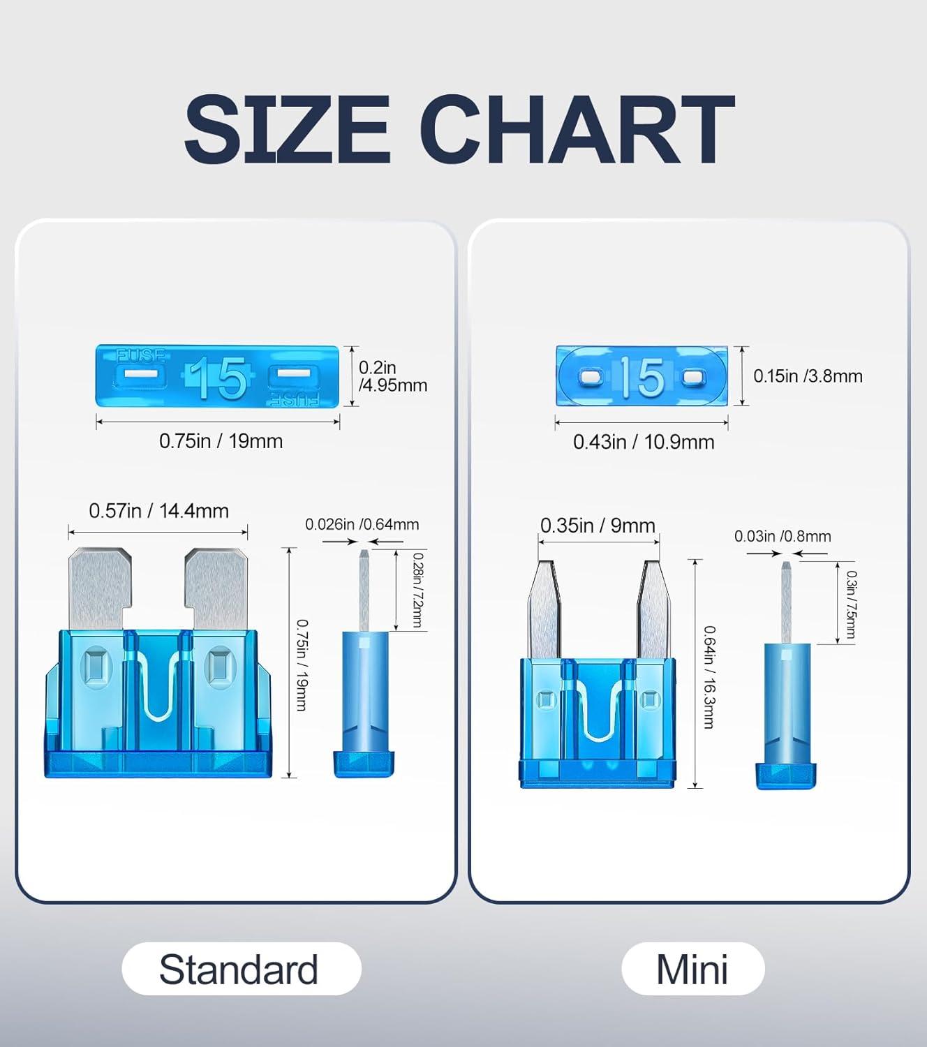 【Easy to identify】– The automotive assortment kit of each current specification is distinguished by different colors, and the current specification number is marked on the top of each assorted fuses, which is easy to identify.