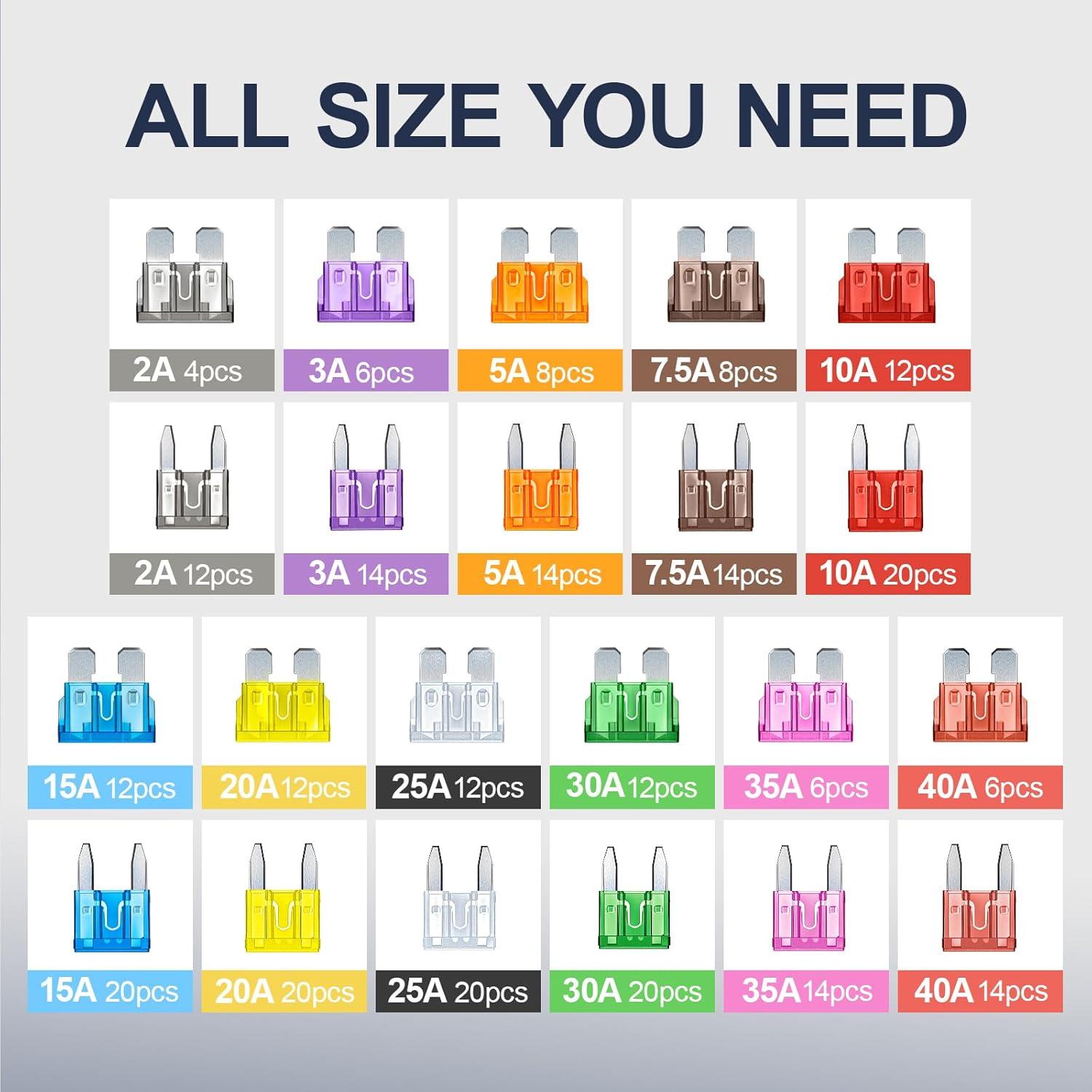 【Reasonable quantity matching】– We increase the number of fuibles para carro with commonly used current specifications of 10A/ 15A/ 20A/ 25A, and reduced other kinds of blade fuses,the fuses automotive kit can serve as a backup fuse box for cars.