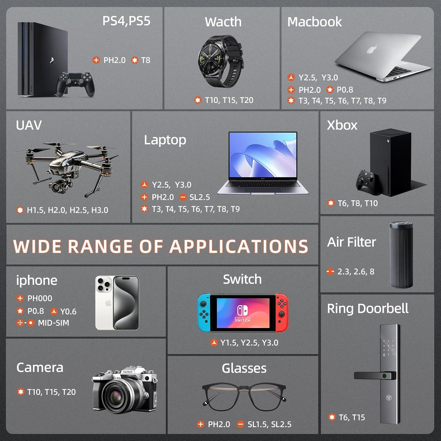 【Wide range of Applications】Suitable for cell phones, iPhone, MacBook, PS5, PS4, Xbox, Switch, glasses, watches, toys, some small appliances disassembly and repair.