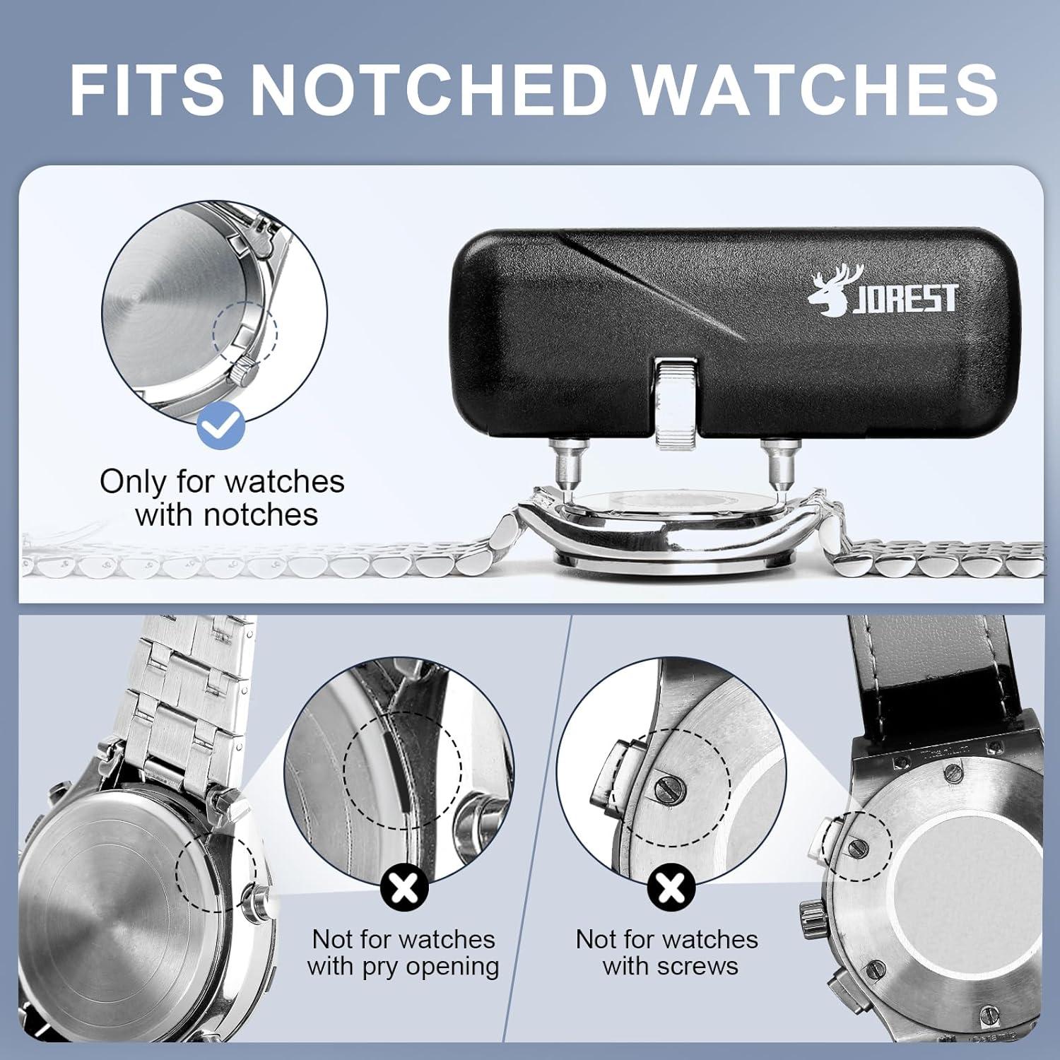 【New upgraded model for 2024】 Made of high-quality metal and plastic, the watch case wrench is strong and durable, waterproof and rustproof; more labor-saving and stable than the old watch opening tool. It is more friendly to open the cover of a large watch to change the battery.