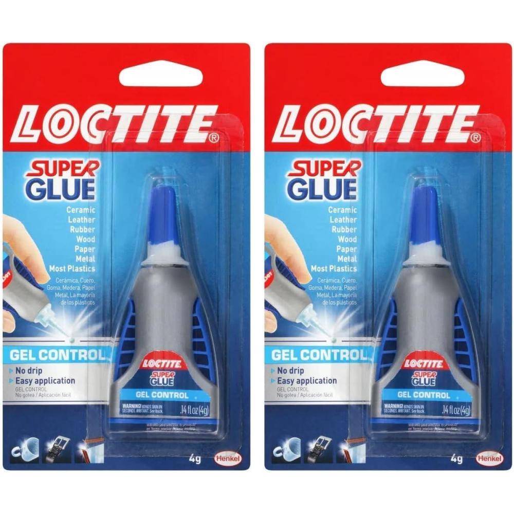 Loctite Super Glue Gel Control has proven superior performance over ordinary super glues for seamless repairs. Specially formulated to fix any breaks around the home or office, this ethyl cyanoacrylate super glue works faster and holds stronger on more surfaces than ordinary adhesives thanks to a patented additive. Loctite Super Glue Gel Control works on a variety of porous and non-porous surfaces and is ideal for vertical applications or repairing a variety of materials. The patented easy side-squeeze design allows for maximum control and precise application with no dripping or running. Loctite Super Glue Gel Control dries clear in 30-45 seconds and is resistant to moisture, most chemicals and freezing temperatures. Loctite Super Glue Gel Control is not recommended for use in dishwasher, oven, or microwave, or for bonding Styrofoam, foam rubber, bone China, glass, glazed surfaces, silicone rubber, PTFE, polyethylene (PE), polypropylene (PP), or polytetrafluoroethylene (PTFE). Not recommended for situations where high flexibility is needed. Great for DIY projects or professional jobs, Loctite Super Glue Gel bonds leather, cork, paper, cardboard, wood, chipboard, fabric, metal, ceramic, rubber and hard plastics such as acrylic, polycarbonate, polystyrene and PVC.
